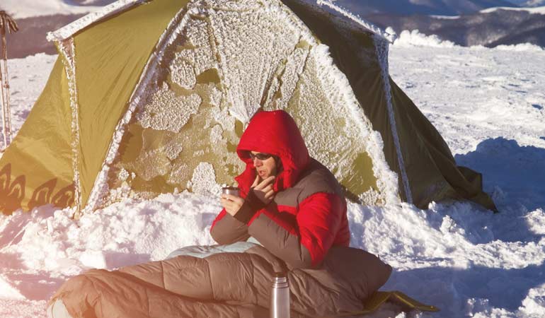 2. Für die Nacht im Zelt ist es am besten, einen Schlafsack in Mumienform zu wählen. Dieser Schlafsack umhüllt Ihre Füße eng, um Ihren Körper warm zu halten, und ist leicht zu tragen. In Bezug auf die Materialien sind Viskoseschlafsäcke leichter zu trocknen als Daunenschlafsäcke und verursachen keine Allergien.
