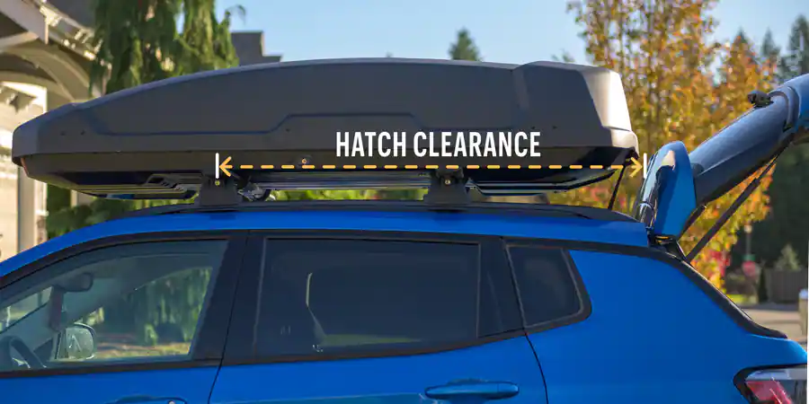 Dies ist ein sehr wichtiger Aspekt, insbesondere wenn Sie einen Fließheck- oder SUV-Limousinenwagen mit Hecktür haben, denn eine Dachbox, die nicht genügend Platz für die Heckklappe bietet, kann Sie daran hindern, die Tür ganz zu öffnen. Wenn Sie in ein Geschäft gehen und mit Hilfe eines Verkaufsspezialisten verschiedene Boxen ausprobieren können, ist das der sicherste Weg, den Platz für die Heckklappe einer Dachbox zu überprüfen. Wenn das keine Option ist, gibt es eine andere Möglichkeit: