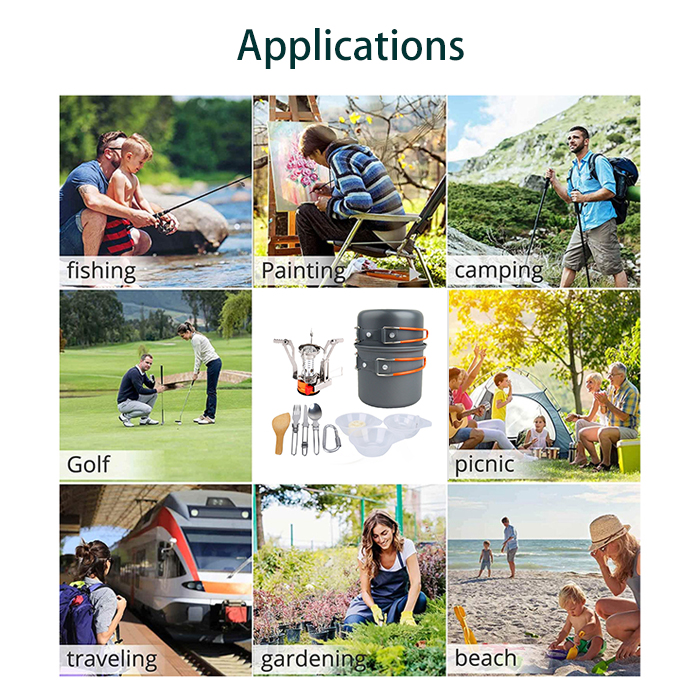 PERFEKTES KOCHGESCHIRR: Dieses Kochset ist perfekt für Camping, Rucksackreisen, Wandern, Angeln, Picknick, Trekking, Notfallvorsorge oder als Teil eines Survival-Kits. Sehr zu empfehlen für einen Tagesausflug oder Wochenendausflug. Sie können es zum Kochen, Wasserkochen, Eier braten usw. verwenden.