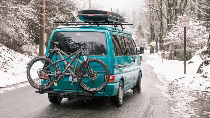 Fahrradträger für die Ladefläche: Wenn Sie einen Pickup besitzen, stehen Ihnen mehrere Fahrradträgeroptionen für den Transport von Fahrrädern zur Verfügung. Mithilfe verschiedener Halterungen und anderem Zubehör können Sie Ihre Fahrräder auf einer Schutzunterlage über der Heckklappe, aufrecht auf der Ladefläche oder mit Fahrradgabeln transportieren, die an einer Stange über der Ladefläche, in der Ladefläche oder an der Seitenschiene des Lkw befestigt sind. Einige Heckklappenunterlagen können bis zu sieben Fahrräder tragen.