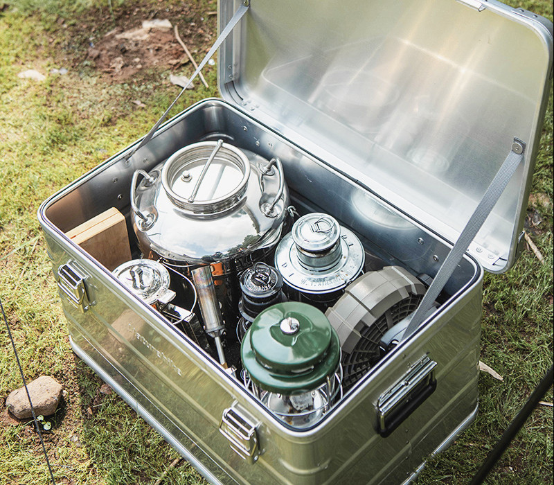 Aluminium-Aufbewahrungsboxen sind eine großartige Möglichkeit, Ihre Campingausrüstung zugänglich, organisiert und tragbar zu halten. Besorgen Sie sich ein paar lange, flache Behälter und lagern Sie alle Ihre sauberen und trockenen Gegenstände darin nach allgemeinen Kategorien (Schlafausrüstung sollte zusammen mit der anderen Schlafausrüstung aufbewahrt werden, Kochgeschirr mit anderem Kochgeschirr usw.). Verwenden Sie ggf. farbcodiertes Klebeband oder Etiketten, um die Behälter zu kennzeichnen und ihren Inhalt zu beschreiben. Sobald alles organisiert ist, können Sie Ihre Behälter mühelos und ohne langes Suchen von der Garage in den Kofferraum bringen und so die Zeit für die Vorbereitung Ihres nächsten Outdoor-Abenteuers sparen.