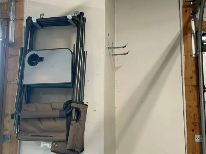 Haken in der Garage sind eine großartige Möglichkeit, nasse Ausrüstung aufzubewahren, die Sie nicht im Haus haben möchten. Perfekt für Schwimmwesten, Wathosen, nasse Regenbekleidung usw. L-Klammern oder Haken sind eine großartige Möglichkeit zur Aufbewahrung Stühle und Zeltstangen.