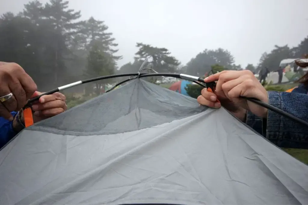 Wenn Sie im Regen ein Zelt aufbauen, ist es wichtig, schnell zu handeln, damit Ihre Ausrüstung trocken bleibt.