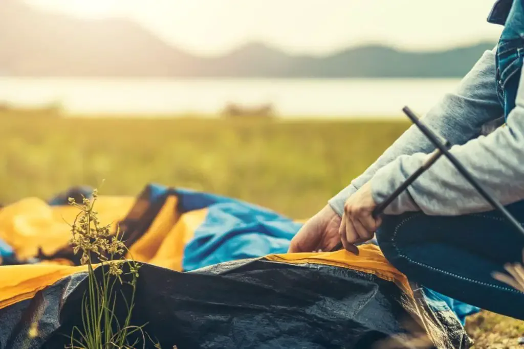 Wenn Sie Ihr Zelt im Regen aufbauen, ist das Ausbreiten einer wasserdichten Bodenplane ein entscheidender Schritt.